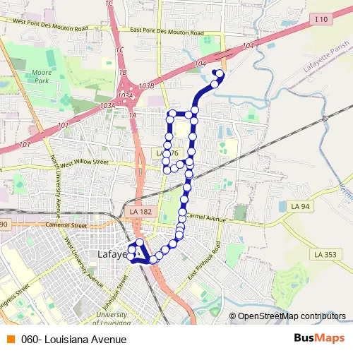 Lafayette Transit System 060- Louisiana Avenue bus Route Map