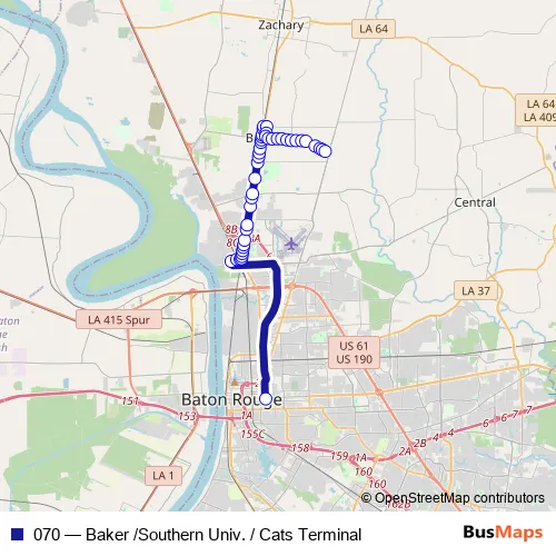 Click here to view the nearest 070 - Baker /Southern Univ. / Cats Terminal bus stop.
