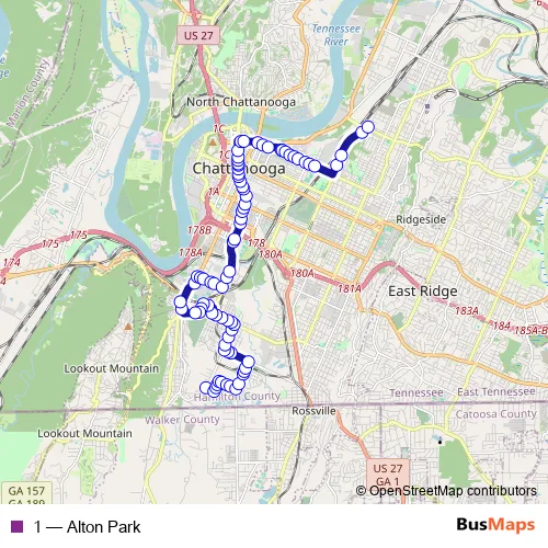 See why over 2 million users trust and consider busmaps.com as the best public transport website. busmaps gives you Chattanooga Buses suggested routes, real-time bus tracker, line route maps in Chattanooga, and helps to find the closest 1 bus stops near you. No internet available? Download an offline PDF map and bus schedule for the 1 bus to take on your trip.