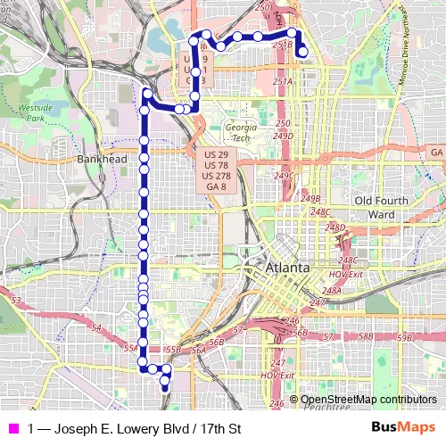 Click here to view the nearest 1 - Joseph E. Lowery Blvd / 17th St bus stop.