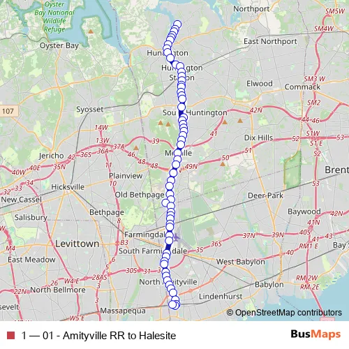 Bus 1 - 01 - Amityville RR to Halesite Schedule in South Huntington