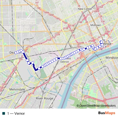 See why over 2 million users trust and consider busmaps.com as the best public transport website. busmaps gives you Detroit Buses suggested routes, real-time bus tracker, line route maps in Detroit, and helps to find the closest 1 bus stops near you. No internet available? Download an offline PDF map and bus schedule for the 1 bus to take on your trip.