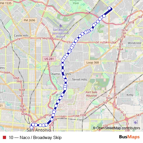 Bus 10 - Naco / Broadway Skip Schedule in San Antonio