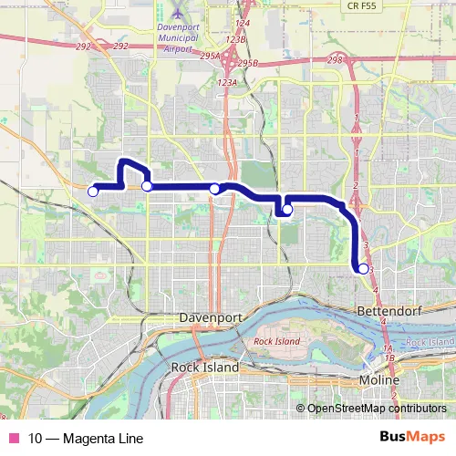 Bus 10 - Magenta Line: Full Schedule in Davenport