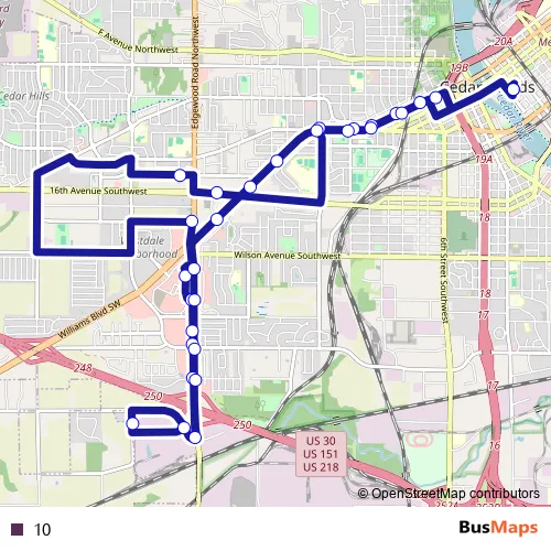 See why over 2 million users trust and consider busmaps.com as the best public transport website. busmaps gives you Cedar Rapids Buses suggested routes, real-time bus tracker, line route maps in Cedar Rapids, and helps to find the closest 10 bus stops near you. No internet available? Download an offline PDF map and bus schedule for the 10 bus to take on your trip.