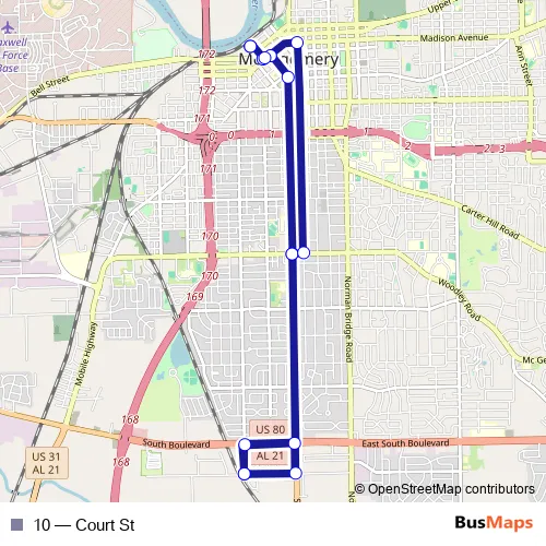 See why over 2 million users trust and consider busmaps.com as the best public transport website. busmaps gives you Montgomery Buses suggested routes, real-time bus tracker, line route maps in Montgomery, and helps to find the closest 10 bus stops near you. No internet available? Download an offline PDF map and bus schedule for the 10 bus to take on your trip.