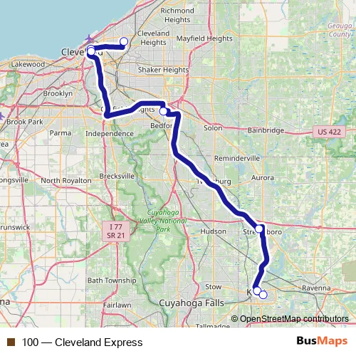 See why over 2 million users trust and consider busmaps.com as the best public transport website. busmaps gives you Cleveland Buses suggested routes, real-time bus tracker, line route maps in Cleveland, and helps to find the closest 100 bus stops near you. No internet available? Download an offline PDF map and bus schedule for the 100 bus to take on your trip.
