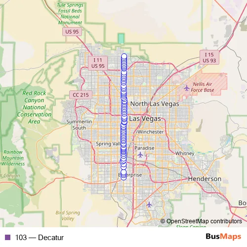 See why over 2 million users trust and consider busmaps.com as the best public transport website. busmaps gives you Las Vegas Buses suggested routes, real-time bus tracker, line route maps in Las Vegas, and helps to find the closest 103 bus stops near you. No internet available? Download an offline PDF map and bus schedule for the 103 bus to take on your trip.