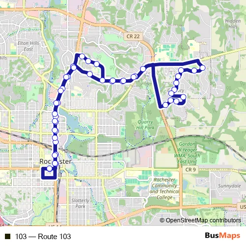 See why over 2 million users trust and consider busmaps.com as the best public transport website. busmaps gives you Rochester Buses suggested routes, real-time bus tracker, line route maps in Rochester, and helps to find the closest 103 bus stops near you. No internet available? Download an offline PDF map and bus schedule for the 103 bus to take on your trip.