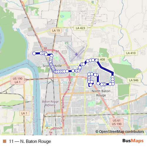 See why over 2 million users trust and consider busmaps.com as the best public transport website. busmaps gives you Baton Rouge Buses suggested routes, real-time bus tracker, line route maps in Baton Rouge, and helps to find the closest 11 bus stops near you. No internet available? Download an offline PDF map and bus schedule for the 11 bus to take on your trip.