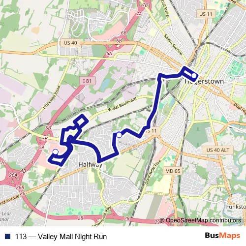 Bus 113 - Valley Mall Night Run Schedule in Hagerstown