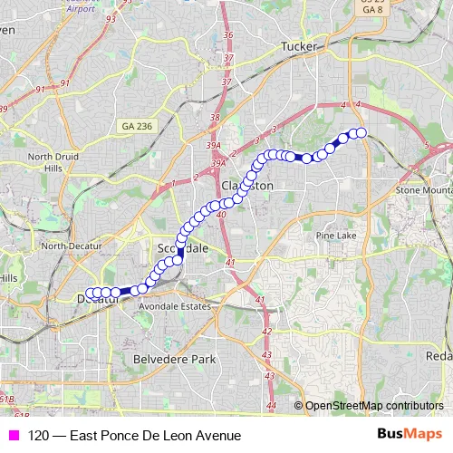 Click here to view the nearest 120 - East Ponce De Leon Avenue bus stop.