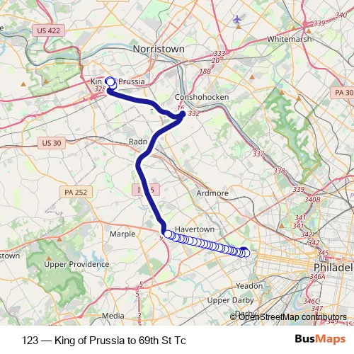 Bus 123 - King of Prussia to 69th St Tc: Full Schedule in Media