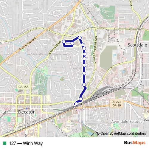 See why over 2 million users trust and consider busmaps.com as the best public transport website. busmaps gives you Decatur Buses suggested routes, real-time bus tracker, line route maps in Decatur, and helps to find the closest 127 bus stops near you. No internet available? Download an offline PDF map and bus schedule for the 127 bus to take on your trip.