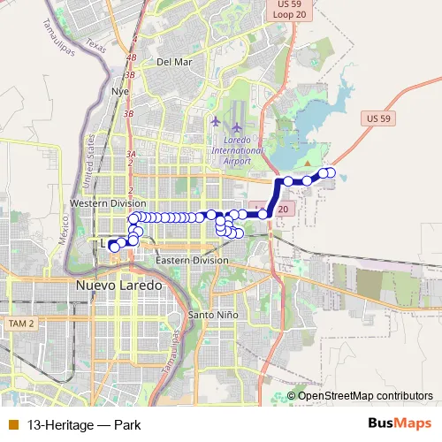 See why over 2 million users trust and consider busmaps.com as the best public transport website. busmaps gives you Laredo Buses suggested routes, real-time bus tracker, line route maps in Laredo, and helps to find the closest 13-Heritage bus stops near you. No internet available? Download an offline PDF map and bus schedule for the 13-Heritage bus to take on your trip.
