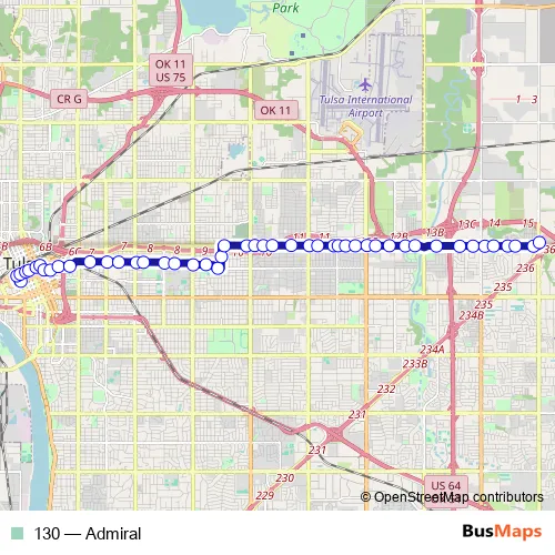 Bus 130 - Admiral in Tulsa: Stops & Timetable