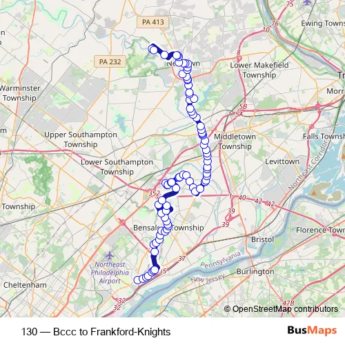 Click here to view the nearest 130 - Bccc to Frankford-Knights bus stop.