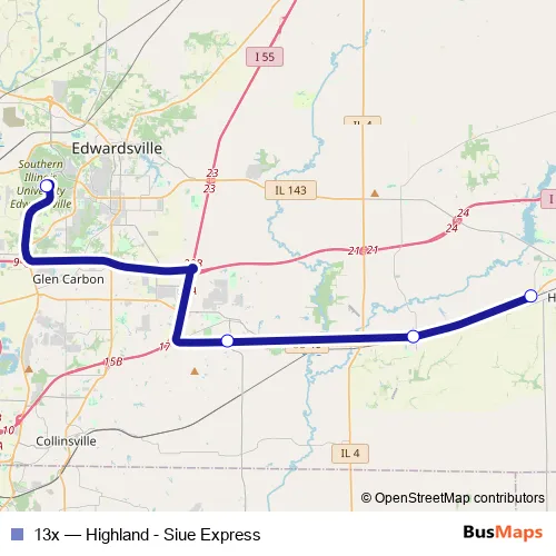 Click here to view the nearest 13x - Highland - Siue Express bus stop.