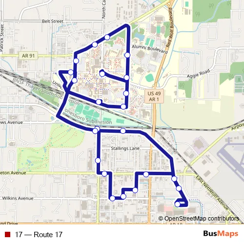 See why over 2 million users trust and consider busmaps.com as the best public transport website. busmaps gives you Jonesboro Buses suggested routes, real-time bus tracker, line route maps in Jonesboro, and helps to find the closest 17 bus stops near you. No internet available? Download an offline PDF map and bus schedule for the 17 bus to take on your trip.