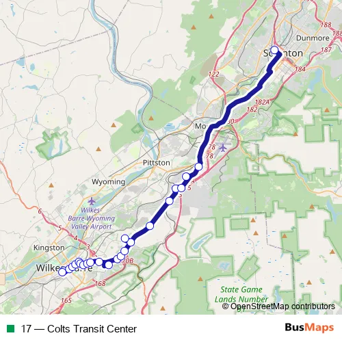 See why over 2 million users trust and consider busmaps.com as the best public transport website. busmaps gives you Wilkes-Barre Buses suggested routes, real-time bus tracker, line route maps in Wilkes-Barre, and helps to find the closest 17 bus stops near you. No internet available? Download an offline PDF map and bus schedule for the 17 bus to take on your trip.