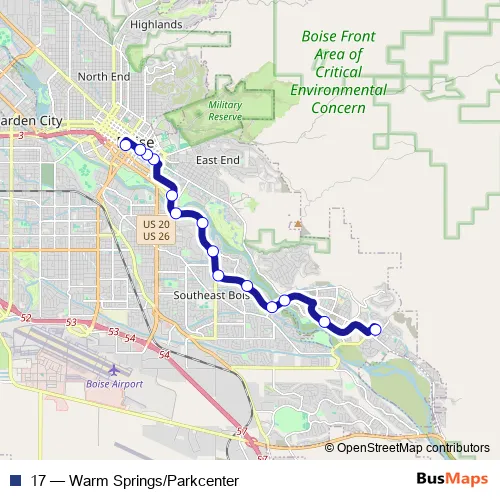 See why over 2 million users trust and consider busmaps.com as the best public transport website. busmaps gives you Boise Buses suggested routes, real-time bus tracker, line route maps in Boise, and helps to find the closest 17 bus stops near you. No internet available? Download an offline PDF map and bus schedule for the 17 bus to take on your trip.