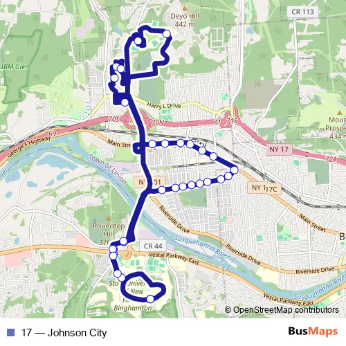 See why over 2 million users trust and consider busmaps.com as the best public transport website. busmaps gives you Binghamton Buses suggested routes, real-time bus tracker, line route maps in Binghamton, and helps to find the closest 17 bus stops near you. No internet available? Download an offline PDF map and bus schedule for the 17 bus to take on your trip.
