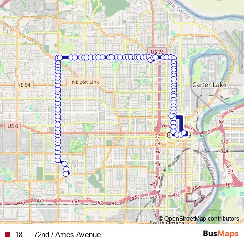 See why over 2 million users trust and consider busmaps.com as the best public transport website. busmaps gives you Omaha Buses suggested routes, real-time bus tracker, line route maps in Omaha, and helps to find the closest 18 bus stops near you. No internet available? Download an offline PDF map and bus schedule for the 18 bus to take on your trip.
