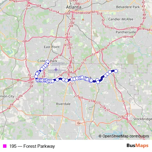 See why over 2 million users trust and consider busmaps.com as the best public transport website. busmaps gives you Atlanta Buses suggested routes, real-time bus tracker, line route maps in Atlanta, and helps to find the closest 195 bus stops near you. No internet available? Download an offline PDF map and bus schedule for the 195 bus to take on your trip.