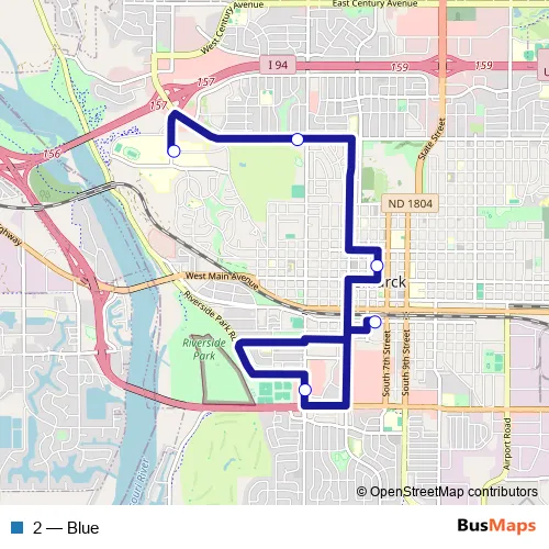 Bus 2 - Blue in Bismarck: Stops & Timetable