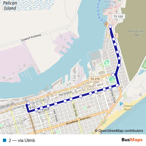 See why over 2 million users trust and consider busmaps.com as the best public transport website. busmaps gives you Galveston Buses suggested routes, real-time bus tracker, line route maps in Galveston, and helps to find the closest 2 bus stops near you. No internet available? Download an offline PDF map and bus schedule for the 2 bus to take on your trip.