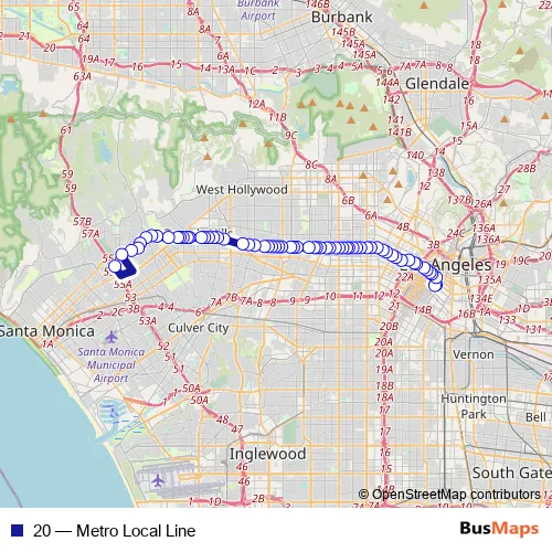 See why over 2 million users trust and consider busmaps.com as the best public transport website. busmaps gives you Los Angeles Buses suggested routes, real-time bus tracker, line route maps in Los Angeles, and helps to find the closest 20 bus stops near you. No internet available? Download an offline PDF map and bus schedule for the 20 bus to take on your trip.