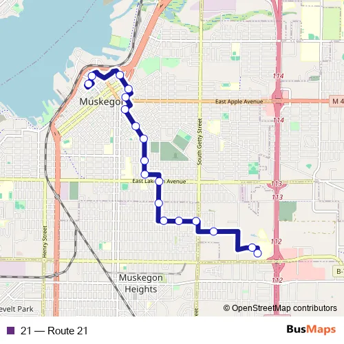 See why over 2 million users trust and consider busmaps.com as the best public transport website. busmaps gives you Muskegon Buses suggested routes, real-time bus tracker, line route maps in Muskegon, and helps to find the closest 21 bus stops near you. No internet available? Download an offline PDF map and bus schedule for the 21 bus to take on your trip.