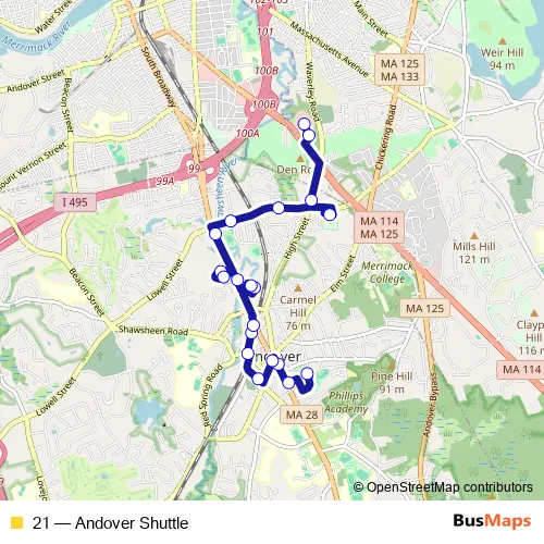 Bus 21 - Andover Shuttle: Full Schedule in Andover