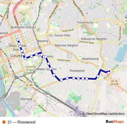 Bus 21 - Rosewood: Full Schedule in Columbia