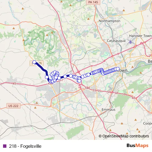 Additional information: 218 - Fogelsville has 55 stops and the total trip duration for this route is approximately 34 minutes.