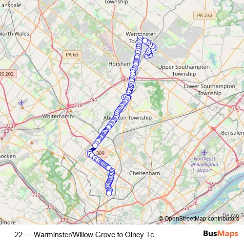 Bus 22 - Warminster/Willow Grove to Olney Tc: Full Schedule in Philadelphia