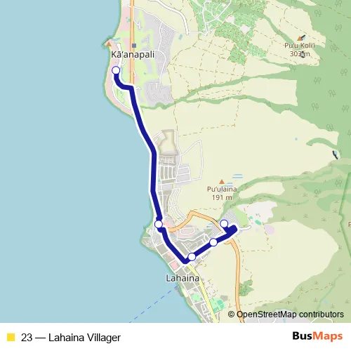 Bus 23 - Lahaina Villager in Lahaina: Stops & Timetable