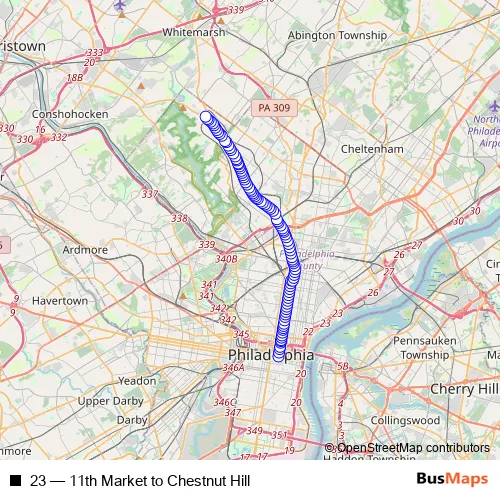Bus 23 - 11th Market to Chestnut Hill Schedule in Philadelphia