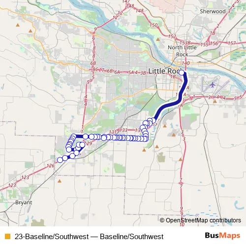 See why over 2 million users trust and consider busmaps.com as the best public transport website. busmaps gives you Little Rock Buses suggested routes, real-time bus tracker, line route maps in Little Rock, and helps to find the closest 23-Baseline/Southwest bus stops near you. No internet available? Download an offline PDF map and bus schedule for the 23-Baseline/Southwest bus to take on your trip.