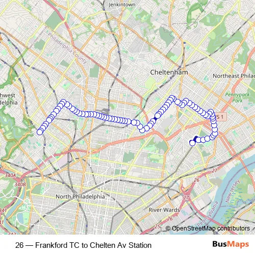 Bus 26 - Frankford TC to Chelten Av Station in Philadelphia: Stops & Timetable