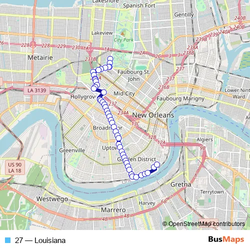 See why over 2 million users trust and consider busmaps.com as the best public transport website. busmaps gives you New Orleans Buses suggested routes, real-time bus tracker, line route maps in New Orleans, and helps to find the closest 27 bus stops near you. No internet available? Download an offline PDF map and bus schedule for the 27 bus to take on your trip.