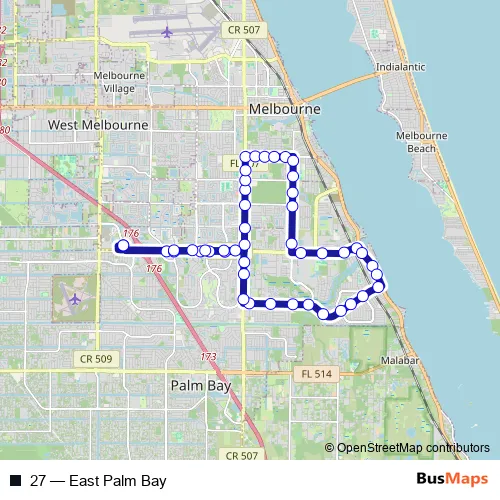 See why over 2 million users trust and consider busmaps.com as the best public transport website. busmaps gives you Palm Bay Buses suggested routes, real-time bus tracker, line route maps in Palm Bay, and helps to find the closest 27 bus stops near you. No internet available? Download an offline PDF map and bus schedule for the 27 bus to take on your trip.