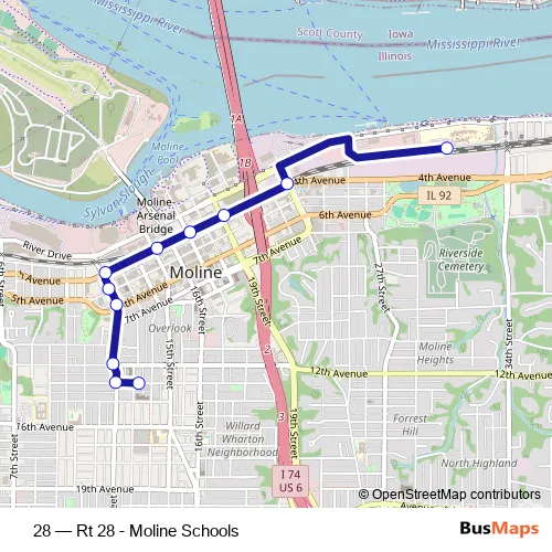 See why over 2 million users trust and consider busmaps.com as the best public transport website. busmaps gives you Rock Island Buses suggested routes, real-time bus tracker, line route maps in Rock Island, and helps to find the closest 28 bus stops near you. No internet available? Download an offline PDF map and bus schedule for the 28 bus to take on your trip.