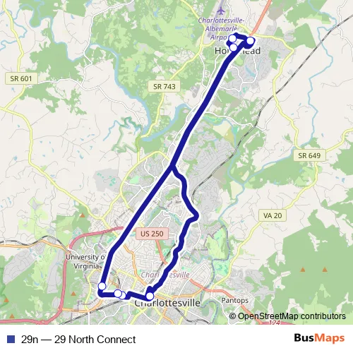 See why over 2 million users trust and consider busmaps.com as the best public transport website. busmaps gives you Charlottesville Buses suggested routes, real-time bus tracker, line route maps in Charlottesville, and helps to find the closest 29n bus stops near you. No internet available? Download an offline PDF map and bus schedule for the 29n bus to take on your trip.