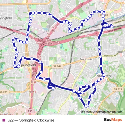 Bus 322 - Springfield Clockwise in Washington: Stops & Timetable