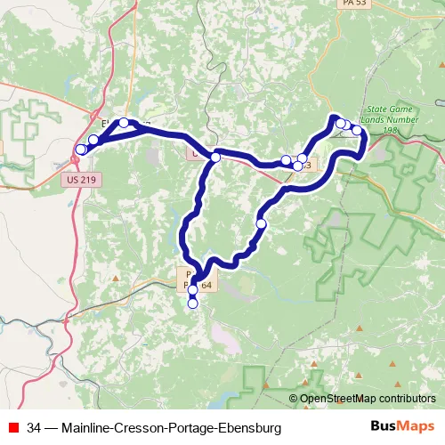 Click here to view the nearest 34 - Mainline-Cresson-Portage-Ebensburg bus stop.