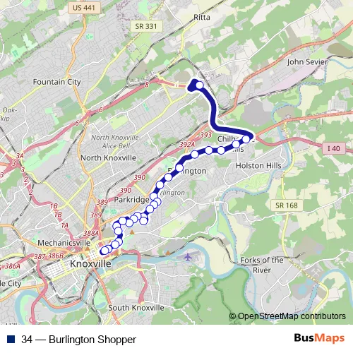 See why over 2 million users trust and consider busmaps.com as the best public transport website. busmaps gives you Knoxville Buses suggested routes, real-time bus tracker, line route maps in Knoxville, and helps to find the closest 34 bus stops near you. No internet available? Download an offline PDF map and bus schedule for the 34 bus to take on your trip.