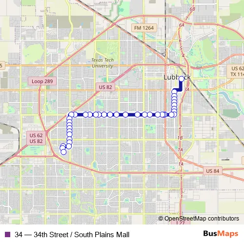 See why over 2 million users trust and consider busmaps.com as the best public transport website. busmaps gives you Lubbock Buses suggested routes, real-time bus tracker, line route maps in Lubbock, and helps to find the closest 34 bus stops near you. No internet available? Download an offline PDF map and bus schedule for the 34 bus to take on your trip.