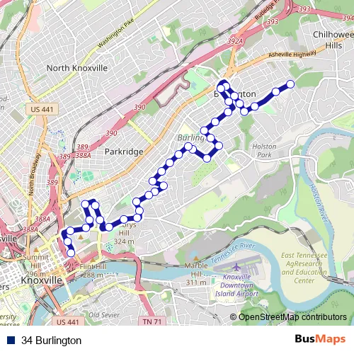 See why over 2 million users trust and consider busmaps.com as the best public transport website. busmaps gives you Knoxville Buses suggested routes, real-time bus tracker, line route maps in Knoxville, and helps to find the closest 34 Burlington bus stops near you. No internet available? Download an offline PDF map and bus schedule for the 34 Burlington bus to take on your trip.