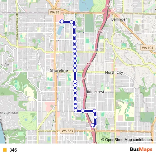 See why over 2 million users trust and consider busmaps.com as the best public transport website. busmaps gives you Shoreline Buses suggested routes, real-time bus tracker, line route maps in Shoreline, and helps to find the closest 346 bus stops near you. No internet available? Download an offline PDF map and bus schedule for the 346 bus to take on your trip.